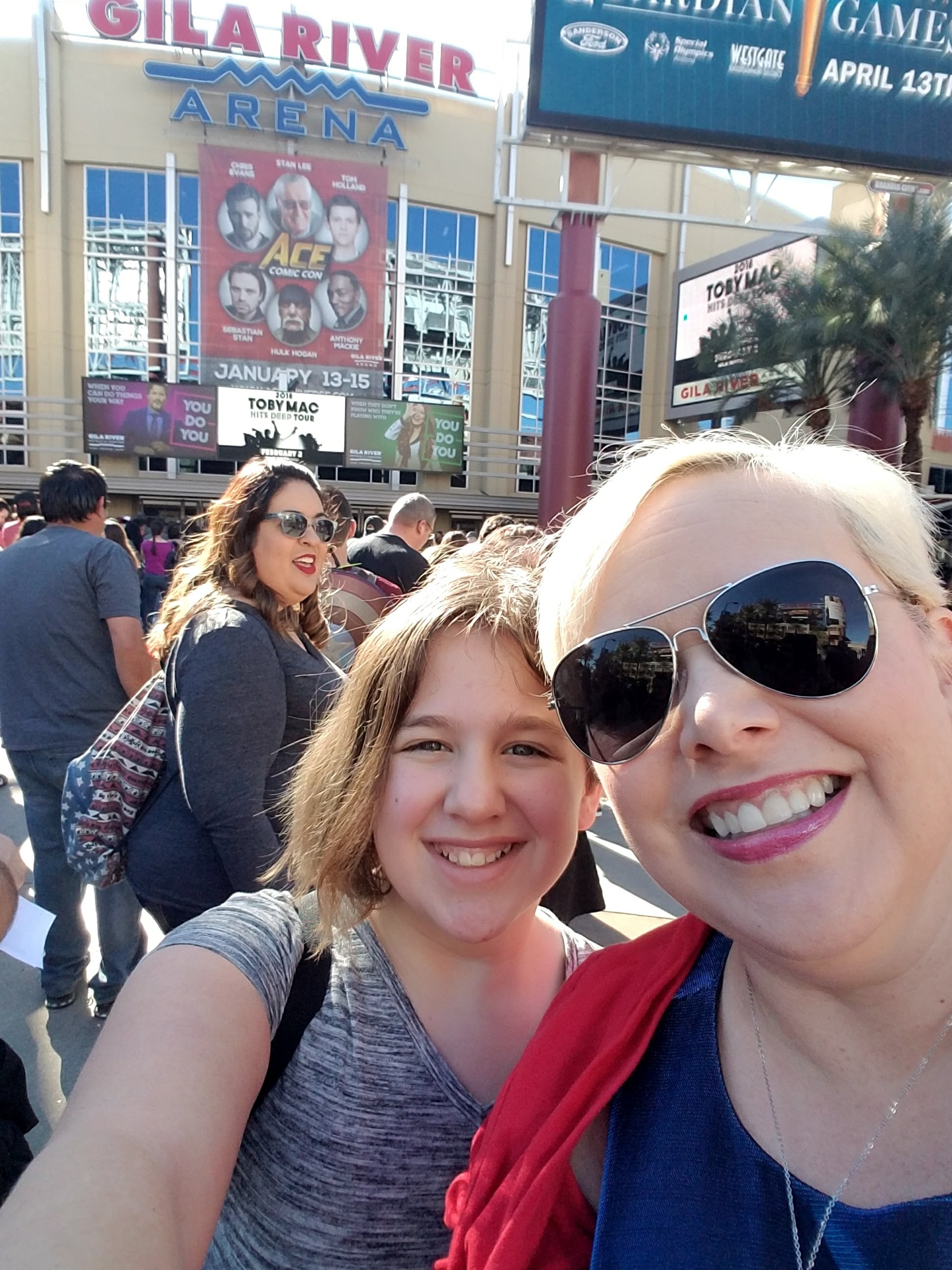 That being said, the staff at the Gila River Arena were the best, the best! So helpful and so friendly. The local PD did weapons check and were great! The staff opened extra gates to get us all out of the sun and into the shade while we waiting for the gates to open. They had a DJ there to entertain us while we waited. They opened the gates almost on time (only 10 minutes late, no biggie). We felt welcome there, unlike other cons where the staff makes you feel like a criminal and barks orders at you (I’m looking at you, SDCC and LA Convention Center!)