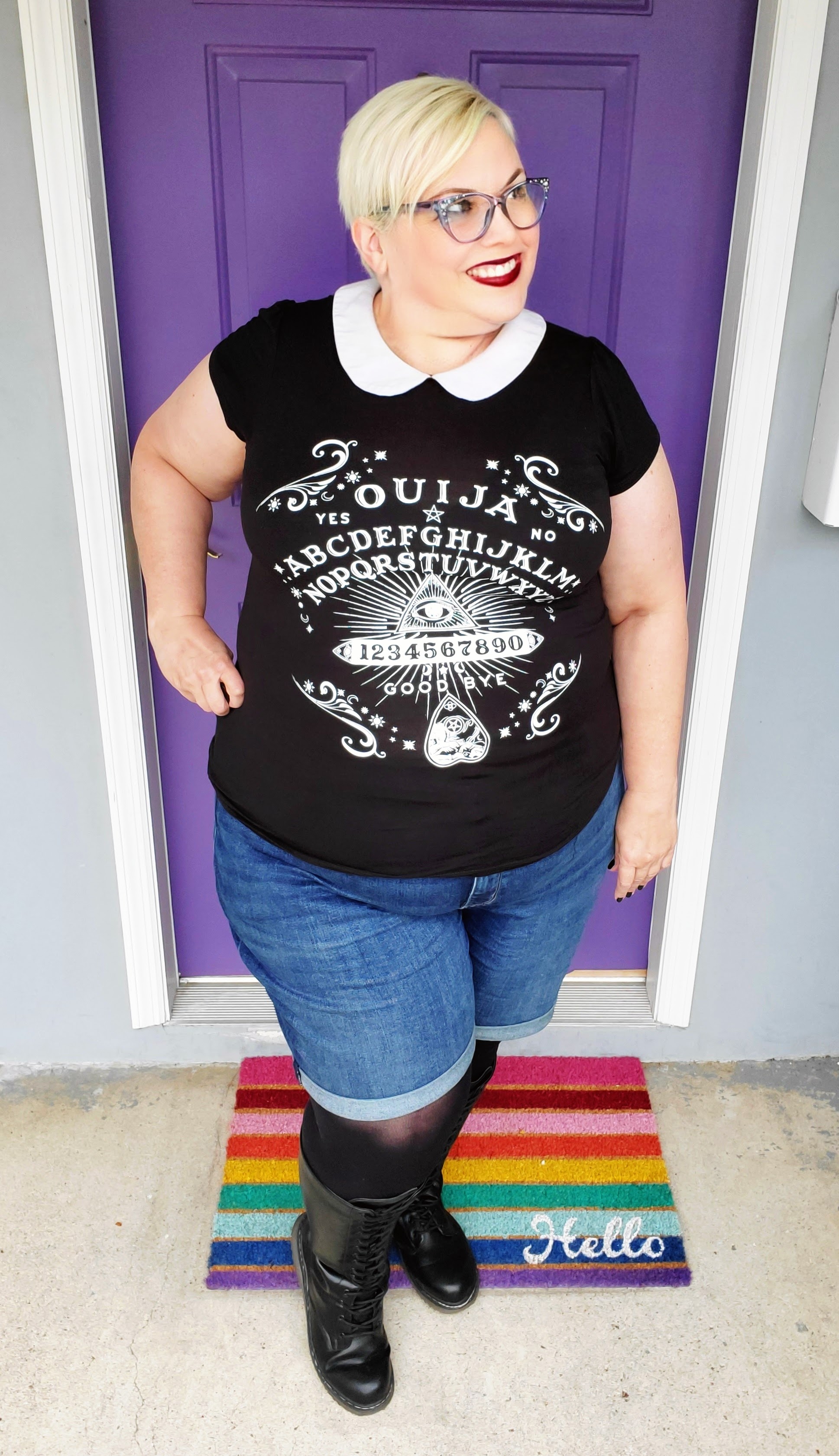 I went with a more goth look here, but you can pick any tee that suits you to go with the shorts. This tee is from Hot Topic.