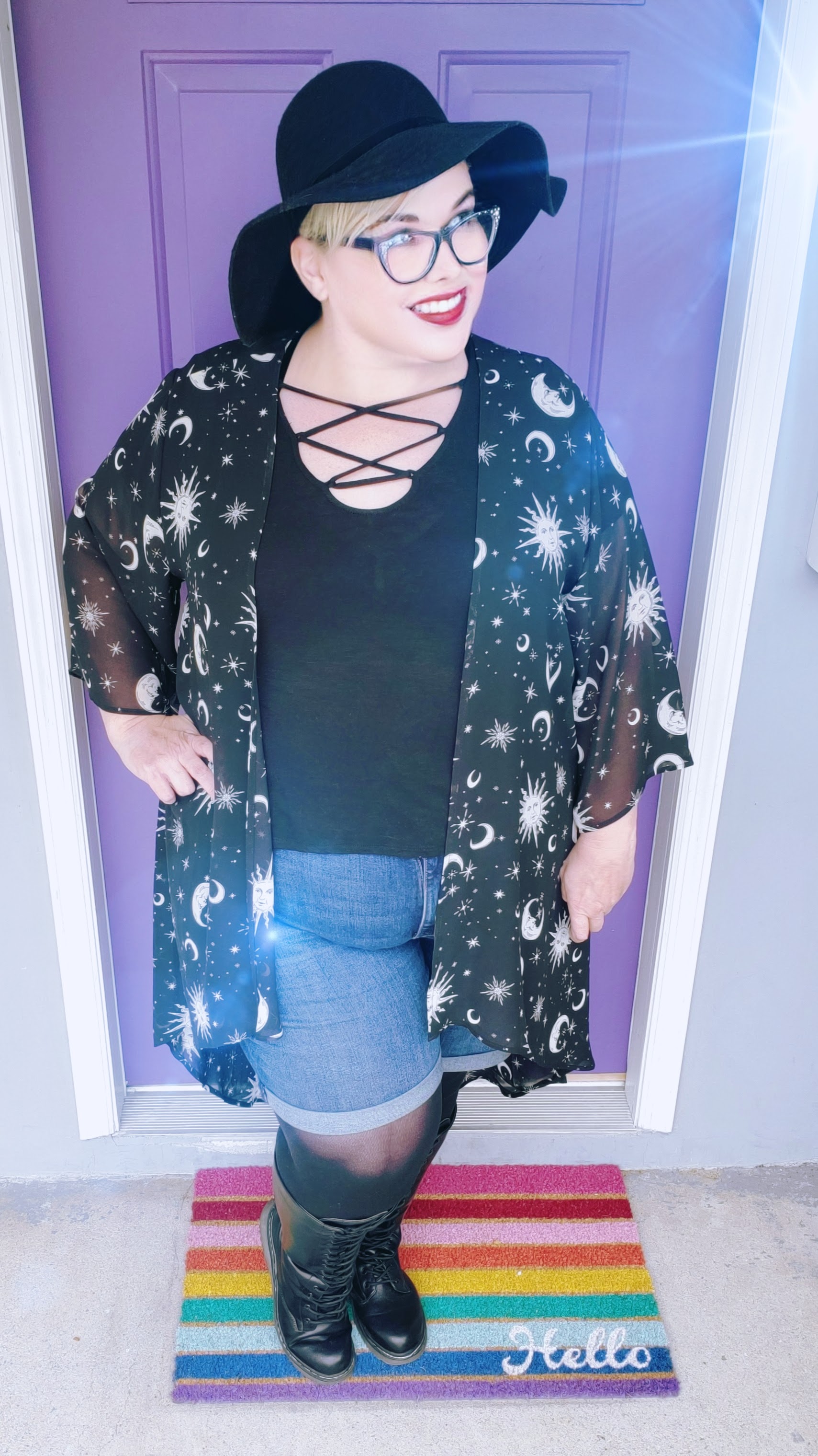 I put on tights from Snag under the shorts with tall boots. You don’t have to go with tights, but again, with my “ride up” situation, putting tights on helps the shorts stay put for me.