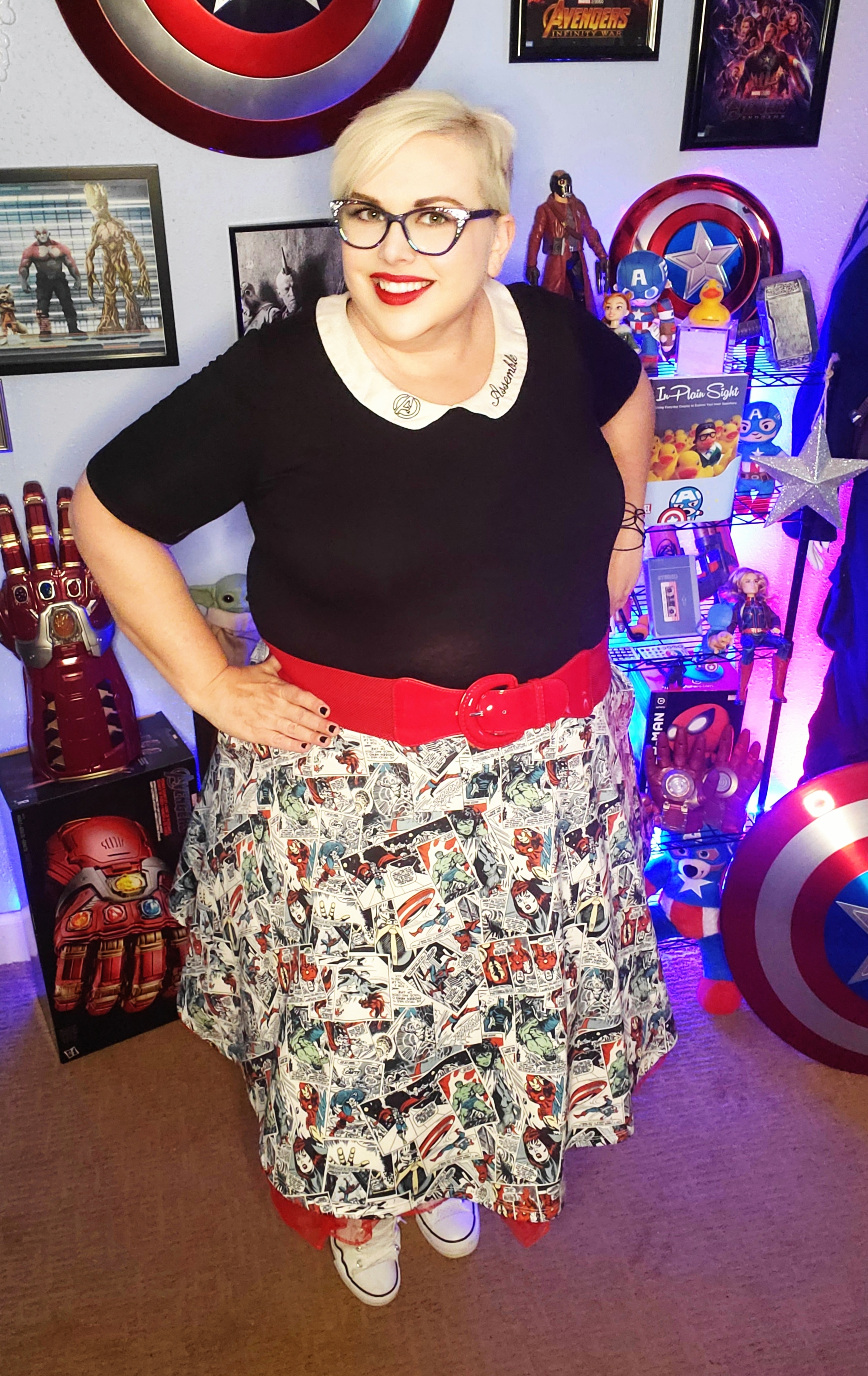 I have a goth style on in this post, but I also have a buffalo plaid one and a navy blue one covered in stars that I pair with my super hero tees.